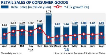 China's August retail sales up 13.4%