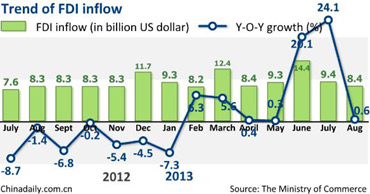 FDI keeps increasing in August