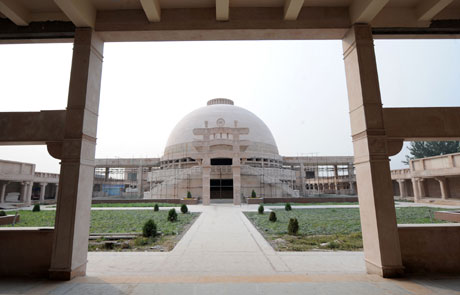 10月19日,這是印度風(fēng)格佛殿全景。 目前,洛陽白馬寺印度風(fēng)格佛殿主體工程進(jìn)入裝修階段。這座佛殿建筑面積達(dá)3450平方米,建筑方案與建設(shè)資金均由印方提供。建于東漢年間的白馬寺是中國第一座官辦寺院,在中印文化交流史上占有重要地位。 (新華社記者 丁海濤 攝)