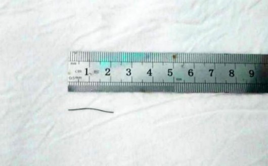 醫生從陸先生心臟中取出的鐵絲。