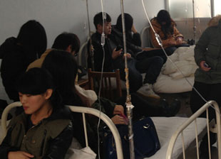 工作人員在為國Ⅲ排放標準的公交車安裝車用尾氣凈化裝置。