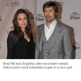 Brad Pitt and Angelina Jolie have been named Hollywood's most influential couple in a new poll.