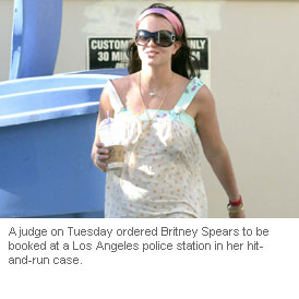 A judge on Tuesday ordered Britney Spears to be booked at a Los Angeles police station in her hit-and-run case.