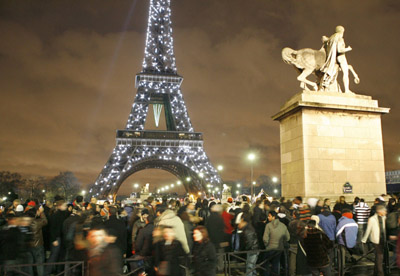 新年夜巴黎街頭約有40萬人在慶祝。 |