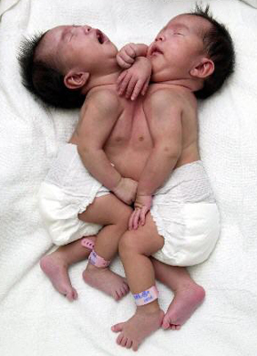 據悉,世界各地有39對連體嬰是頭部相連的。2002年,一對埃及連頭嬰兒成功實施分離手術,現在,他們已經4歲了,身體功能都很正常。同一年,兩對危地馬拉連體嬰也在美國洛杉磯的一家醫院成功“單飛”。