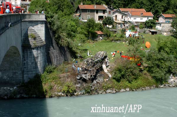 這是7月22日在法國格勒諾布爾附近拍攝的車禍現(xiàn)場。據(jù)法國媒體報道,一輛滿載波蘭朝圣者的客車當天在阿爾卑斯山區(qū)第85號國家公路距法國東部城市格勒諾布爾約30公里的地段發(fā)生翻車事故并墜入山谷,造成至少20人死亡。
