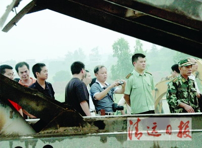 在場的英德交通局長鐘佩韶告訴記者,險情發生后,他立即通知交通局全體干部職工,每人上街帶一臺車來。許多車主一聽大堤出險,都自覺趕到了現場。在100多臺大車中,有一位司機開小手扶拖拉機“突突”自發趕到了搶險現場,特別“顯眼”?,F場指揮的清遠市委副書記陳茂輝、英德市長謝杰斌等領導連稱“精神可嘉”!記者事后還知,英德民營企業主王炳文先生等獲悉險情后,迅速調運10多臺大車到了現場。