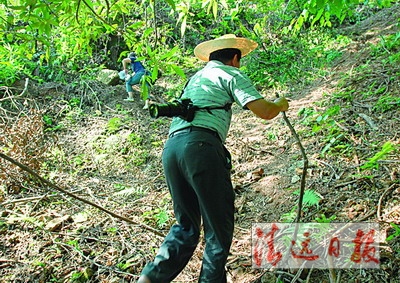 17日夜晚,記者在英德三防辦守候到了18日凌晨。按預計,洪峰應該在12時前達到最高峰。17日晚12時前,洪峰卻有所下降,水位為33.8米。然而,到了18日早上7時,北江水位猛然漲到34.19米,到了本次洪水最高水位。英德馬上進入最緊急狀態,更加嚴密地巡堤。8時15分,巡堤員報告險情:西岸防洪堤北段斷崗山段發現管涌、跌窩。記者18日早晨8時40分,到英德三防辦獲悉這一險情,隨即趕到現場。