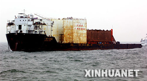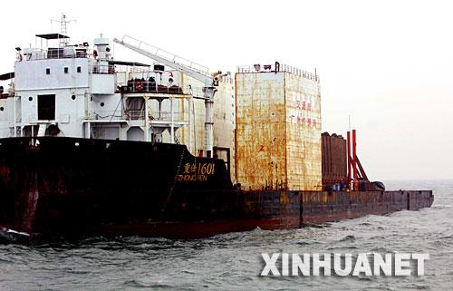 12月23日,裝有“南海一號”沉箱的駁輪在大海上緩緩前行。新華社記者 周文杰攝