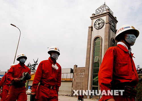 2008年5月19日至21日為全國哀悼日。5月19日14時28分起,全國人民默哀3分鐘,汽車、火車、輪船鳴笛,防空警報鳴響。 2008年5月12日14時28分,我國四川省汶川縣發(fā)生里氏8.0級大地震,震中在汶川縣。截至5月18日14時,汶川大地震已造成32476人遇難。德陽市漢旺鎮(zhèn)漢旺廣場上的一座大鐘將時間定格在地震發(fā)生的那一刻(2008年5月14日攝)。 新華社記者王建華攝