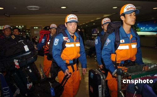 5月21日上午,前往四川地震災(zāi)區(qū)支援中國(guó)抗震救災(zāi)的日本國(guó)際緊急救援隊(duì)一行乘機(jī)回到東京,受到日本政府和在日華人華僑的歡迎。圖為抵達(dá)成田機(jī)場(chǎng)的日本救援隊(duì)隊(duì)員。中新社發(fā) 朱沿華 攝