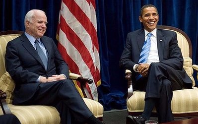 中國日報網環球在線消息:據美國媒體報道,美國當選總統奧巴馬11月17日與總統選舉中的共和黨對手麥凱恩在芝加哥舉行會談,會后雙方一致表示將攜手合作,共同應對金融危機等美國面臨的重大挑戰。這是奧巴馬11月4日當選總統以來與麥凱恩的首次會晤,但媒體認為這更多是一個象征性的舉動。