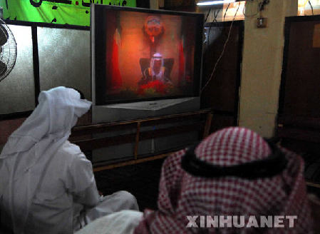 3月18日,兩名科威特人在首都科威特城的一個市場觀看埃米爾的電視講話。當晚,科威特埃米爾(國家元首)艾哈邁德·薩巴赫宣布,為化解目前的國內政治亂局,決定解散議會并在60天內重新選舉。新華社發(努法攝)