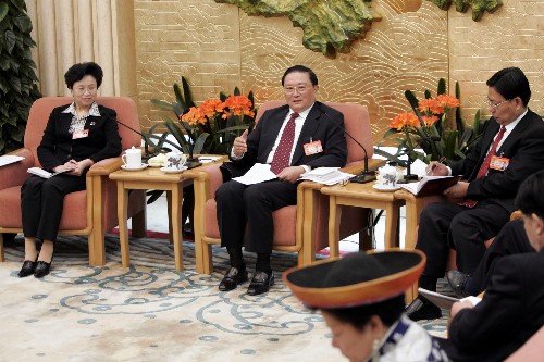 3月8日,中共中央政治局常委李長春參加十屆全國人大四次會議湖南代表團審議。 新華社記者李學仁攝