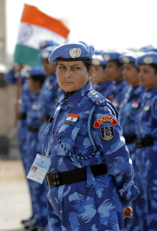 中國日報網環球在線消息:1月30日,聯合國首支“女子維和部隊”抵達西非的利比里亞。這支部隊的103名成員全部是印度女警,經過嚴格挑選和訓練,她們將在維和任務中發揮特別的作用。