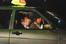 約晚上九時(shí)半,在戲中飾演的士司機(jī)的趙薇便以一身“娘”爆造型出現(xiàn),頭發(fā)蓬松、兩手插袋的她,愁容滿臉,未知是否因雙眼不適而影響心情。當(dāng)她坐上的士,導(dǎo)演一叫開機(jī),便即回復(fù)狀態(tài),在鏡頭前笑意盈盈地跟本木雅弘大做對手戲,更用唇膏于的士車窗上寫下“我愛你”來示愛,因兩人表現(xiàn)專業(yè),很快便完成任務(wù),然后再拍下一場。
