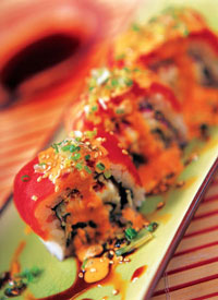 壽司的精致細膩,如同一個水一般溫柔的女子,在秀色可餐與可餐秀色之間,萌生出一種朦朧卻爽朗的感觸。壽司又稱四喜飯,是日本料理中最具代表性的料理之一。日本的壽司就像中國的餃子,不同的是中國的餃子由多種餡兒組成,而壽司是由多種魚組成。在日常生活中自制壽司也并非難事,以下介紹制作天麩羅壽司的方法: