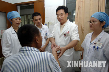 | 這是廣州市第八人民醫院院長唐小平(右二)在病房探視艾滋病人(8月24日攝)。新華社記者 劉大偉 攝 |