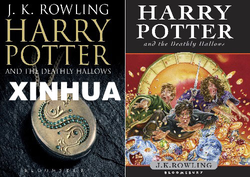 《哈利·波特與死亡圣徒》兒童版(右)和成人版(左)封面的拼版照片