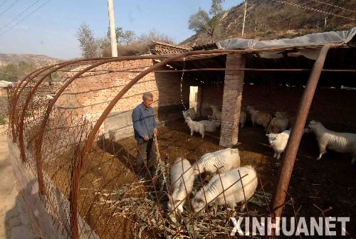 延安市寶塔區柳林鎮麻塔村一位農民在給圈養的羊喂食(11月4日攝)。麻塔村1300余畝坡耕地已全部退耕還林,封山禁牧和舍飼圈養,使農民從廣種薄收的落后生產方式中解放出來。目前,整個延安市已累計退耕還林865萬畝。新華社記者李曉果攝