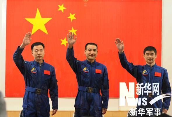 “神舟七號”載人航天飛行任務航天員乘組[新華軍事記者 李剛攝影]