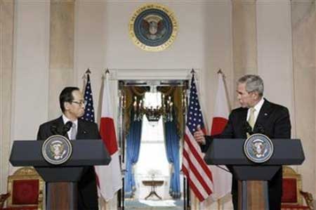 日本首相福田在美國阿靈頓國家公墓獻花圈。