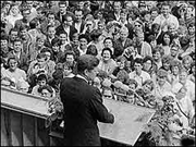 After the speech, the mayor of West Berlin, Willi Brandt, spoke out for the citizens of East Germany, saying they would be brought out in a few days to greet the Soviet leader, Nikita Khrushchev, whether they wanted to or not.