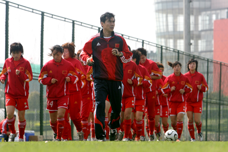 Chinese women soccer team are undergoing first public intensive training in Wuhan,central China's Hubei Province to prepare for World Women Soccer Star Tournament[newsphoto]