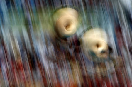 Scott Robertson and Robert Newbery of Australia compete in the men's synchronised 3m springboard diving final at the National Aquatics Center during the 2008 Beijing Olympic Games August 13, 2008. [Agencies]