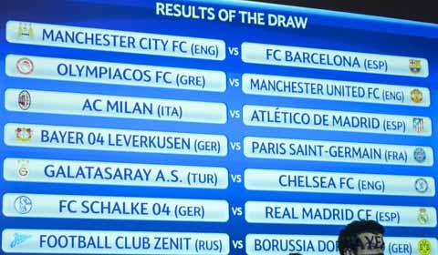 Also, nine-time winner Real Madrid will face Schalke, Manchester United got a favorable draw against Olympiakos, Borussia Dortmund will face Zenit St. Petersburg, AC Milan will play Atletico Madrid, and Paris Saint-Germain will meet Bayer Leverkusen.