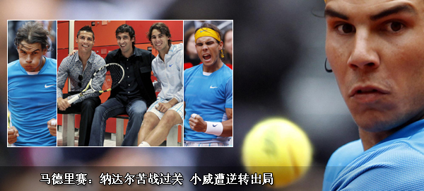 馬德里賽:納達爾苦戰過關 小威遭逆轉出局