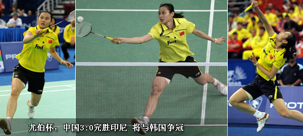 尤伯杯:中國3:0完勝印尼 將與韓國爭冠
