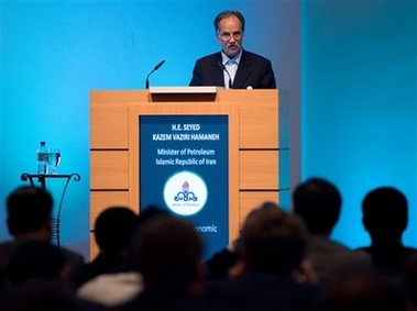 Iranian Minister of Petroleum Kazem Vaziri Hamaneh delivers his keynote address at the 12th Asia Oil and Gas Conference 'A Shared Future' in Kuala Lumpur, Malaysia, Monday, June 11, 2007. [AP]