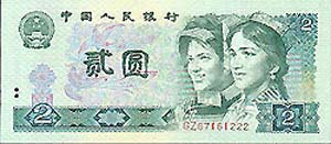 中國日報網站環球在線消息:目前,隨著2元人民幣不再發行和逐漸退出貨幣流通領域,其收藏價值猛增。據錢幣專家預測,隨著時間推移,2元人民幣的升值潛力將不斷上升。1953年版本的2元人民幣在收藏界已升值為1000元左右,1980年版2元人民幣現已升至40—60元/張。
